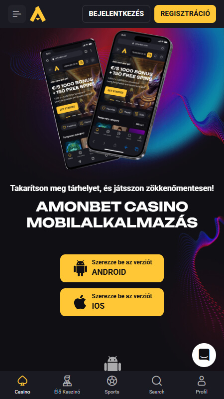 Az AmonBet kiemelt figyelmet fordít a mobilos játékélményre, így a kaszinó nemcsak böngészőből érhető el, hanem dedikált alkalmazást is biztosít. Az AmonBet app Android verziója közvetlenül az oldalról tölthető le, és egy egyszerű .apk telepítővel futtatható. Az iOS felhasználók bár nem mindig találnak önálló applikációt az App Store-ban, azonban a mobilra optimalizált weboldal segítségével teljes értékű hozzáférést kapnak minden funkcióhoz. A felület automatikusan igazodik a készülék méretéhez, akár 5,2”-es, akár 6,7”-es kijelzőről van szó.