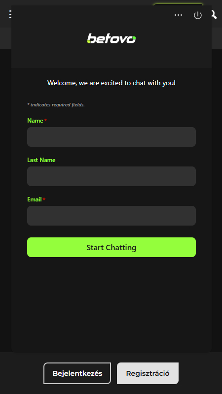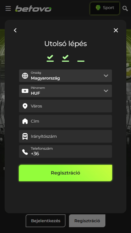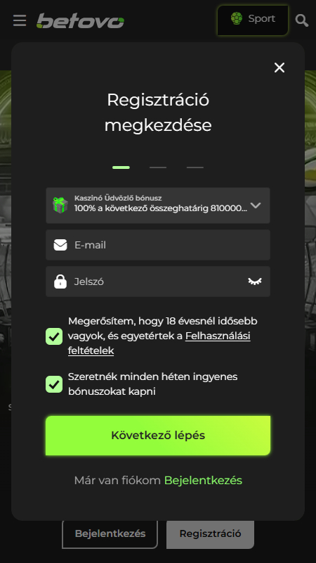 A Betovo regisztráció folyamata gyors, egyszerű és felhasználóbarát, így néhány perc alatt létrehozható egy új fiók. A kezdéshez kattints a főoldalon található „Regisztráció” gombra.