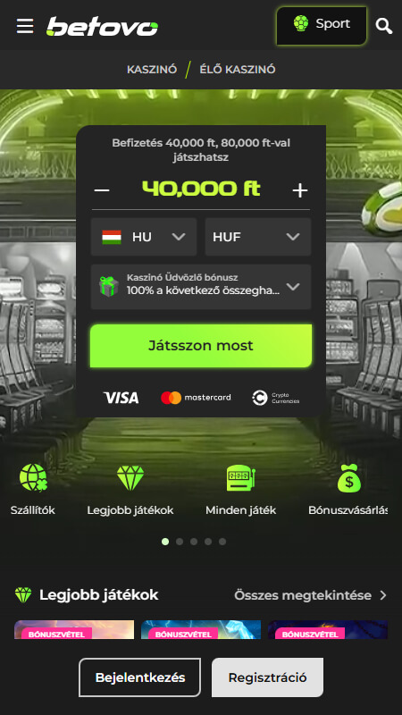 A Betovo Kaszinó egy modern és megbízható online szerencsejáték-platform, amely nagy hangsúlyt fektet a biztonságra és a felhasználói élményre. A kaszinó kínálata rendkívül széles, több ezer játékból válogathatnak a játékosok, legyen szó klasszikus nyerőgépekről, élő osztós játékokról vagy sportfogadásról. A fizetési lehetőségek gyorsak és egyszerűek, a tranzakciók gördülékenyen zajlanak, így a játékosok zavartalanul élvezhetik a játékot.