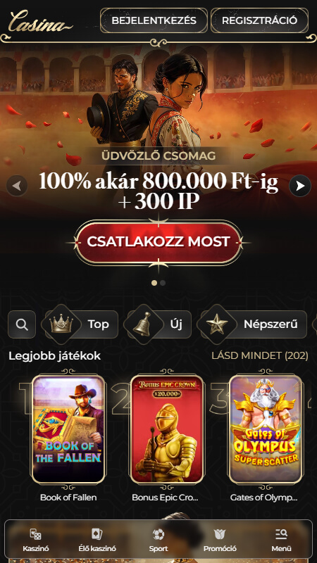 A Casina felülete olyan, mint egy profi módon megtervezett digitális játszótér: minden a helyén van, mégis árad belőle az a pezsgő energia, amiért az ember belép egy kaszinóba. Az oldal elrendezése rendkívül logikus, nem kell percekig bolyonganod a menüpontok között, hogy megtaláld a kedvenc slotodat vagy az élő krupiés asztalokat.