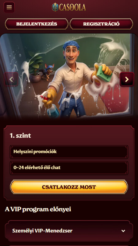 | 1. szint | Promóciók itt helyben, 0-24 Élő Chat |
