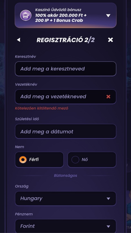 Regisztráció nélkül nincs játék, nincs bónusz, nincs kifizetés. De van jó hír: a folyamat tényleg egyszerű, és nem kér tőled semmi extrát, amit ne tudnál két perc alatt bepötyögni.
