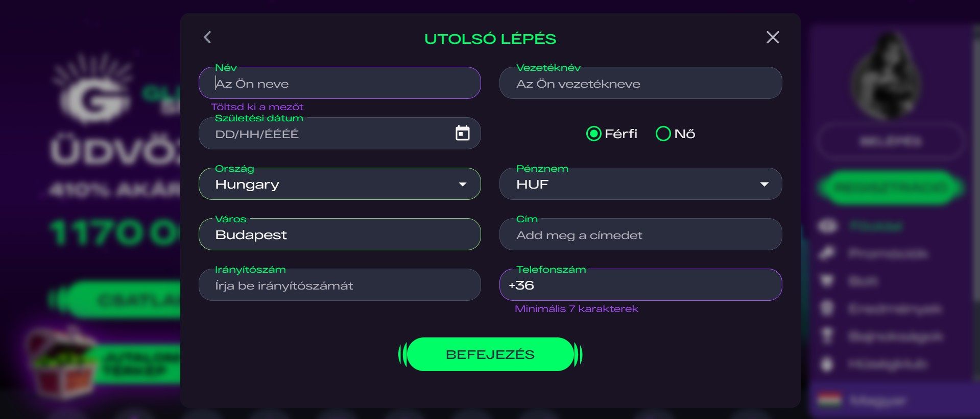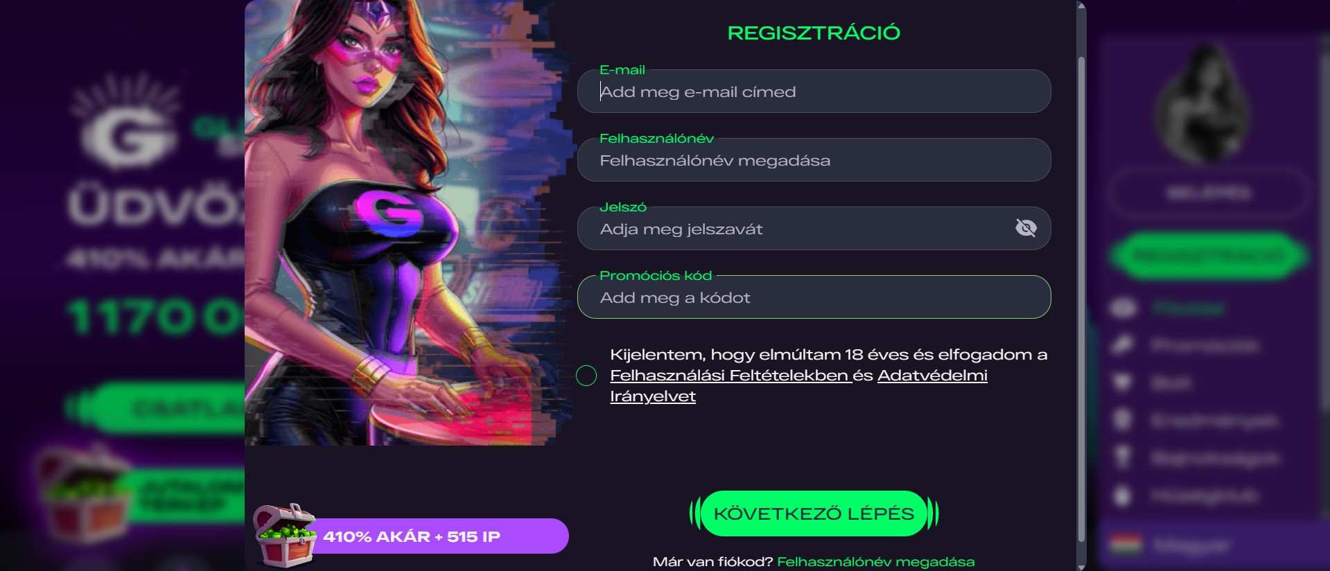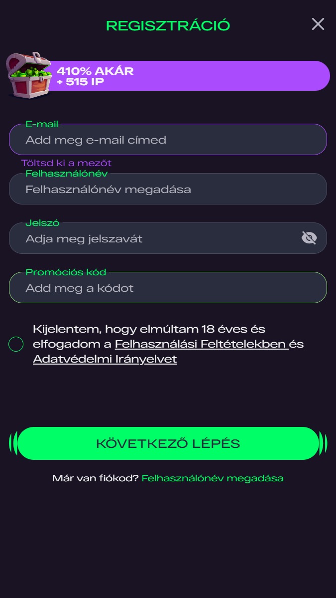 | 🎁 Üdvözlő csomag | Összesen 410% akár 1,170,000 Ft + 515 IP 6 befizetésre |