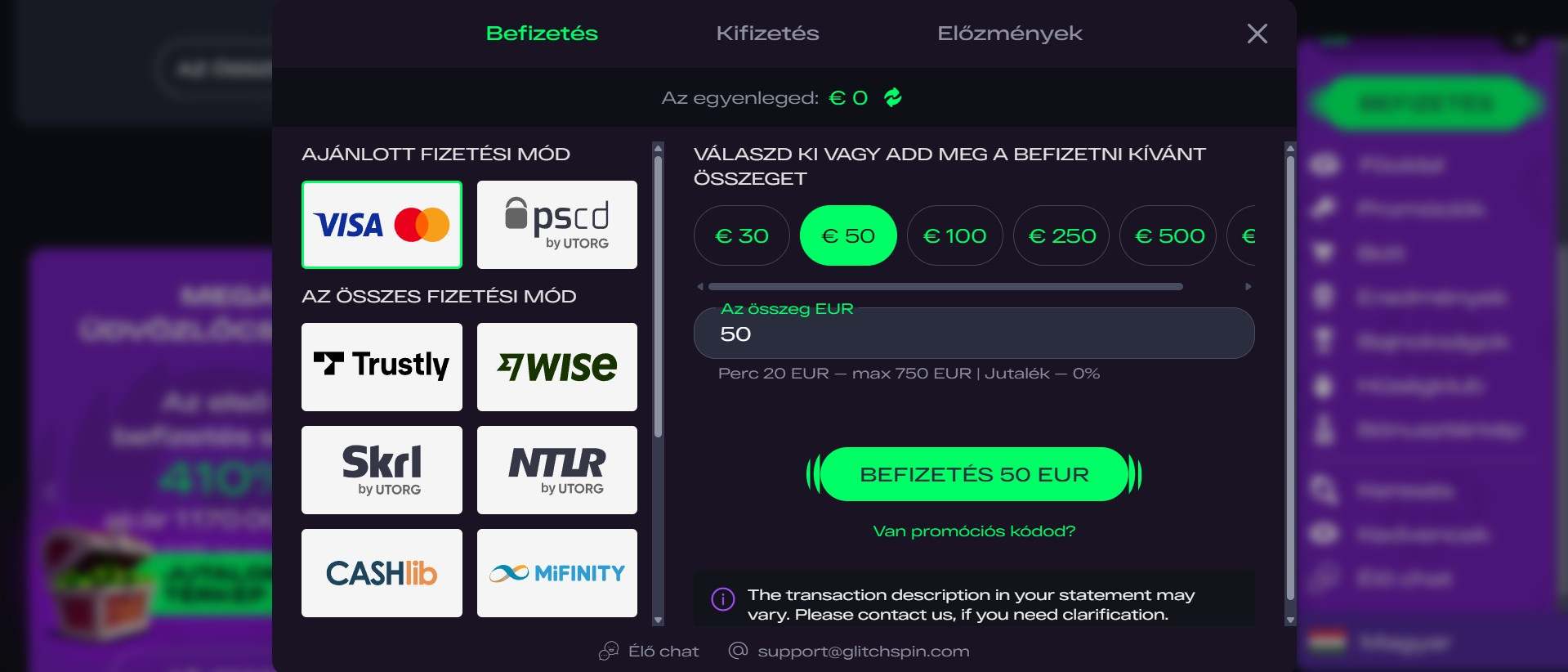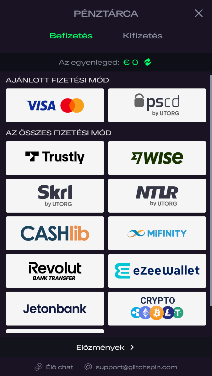 A befizetések azonnal megérkeznek, a kifizetések gyorsan átfutnak, és a fizetési módszerek széles skálája kínál kényelmet és választási lehetőséget. Az izgalmakon túl a GlitchSpin a felelős szerencsejátékot támogatja, melyet robusztus biztonsági protokollok ölelnek körül, védve a tisztességet és a játékosok biztonságát.