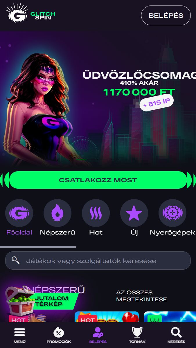A nagylelkűség szabadon áramlik, egy üdvözlő csomaggal, amely merész 410%-os növekedést ígér – valódi meghívás a mélybe merülésre. A csillogáson túl a GlitchSpin szilárdan áll a biztonság és a felelős szerencsejáték pillérein, olyan játékteret teremtve, amely ugyanolyan biztonságos, mint amilyen izgalmas. Elegáns, modern felülete és gördülő promóciói izgalmas utazássá teszik mind az újoncok, mind a veteránok számára, egy ragyogó jövőt sejtetve a kaszinó univerzumban.