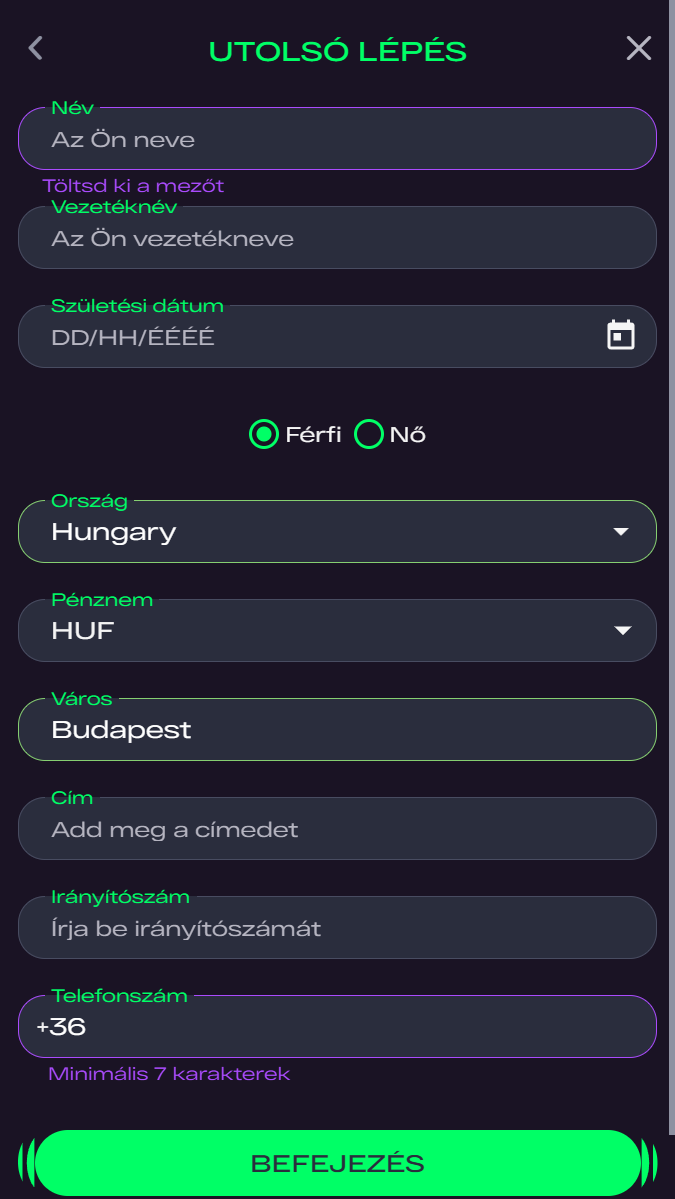 | VISA / Mastercard | 8 000 Ft – 290 000 | Azonnali | Ingyenes |