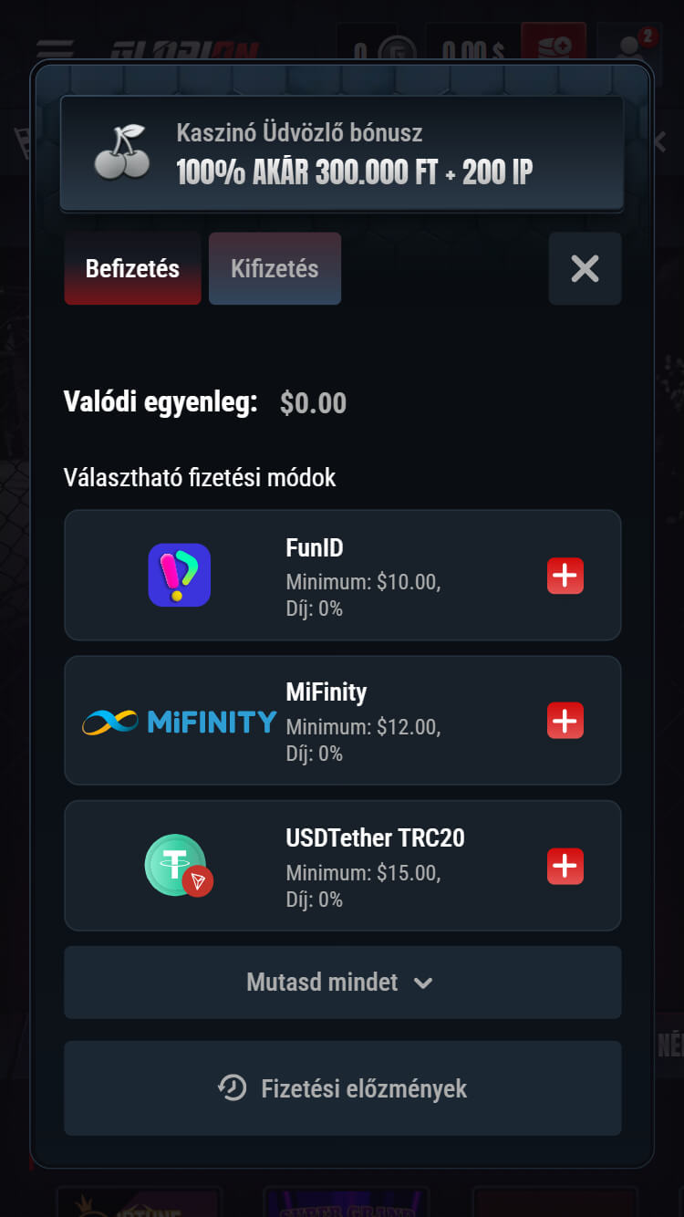 A fizetési lehetőségek a kaszinó gerincét adják, ha ott akadozik valami, hiába a szép grafika, a jó bónusz, a gyors ügyfélszolgálat. A Glorionnál ezt nagyon is értik. Az alábbi táblázatban látható, hogy milyen módokon lehet pénzt be- és kivenni, mennyit, milyen gyorsan, és milyen keretek között.