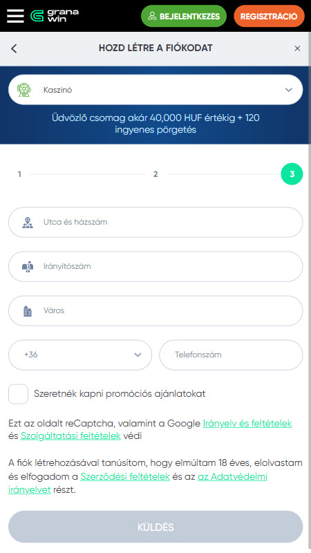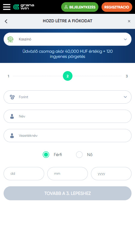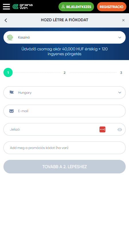 Alább láthatod a Granawin kaszinó regisztráció lépéseit: