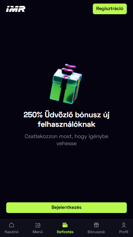 | 🎁 Bónusz | Üdvözlő csomag: 250% bónusz akár 332.000 Ft és 250 ingyenes pörgetés |