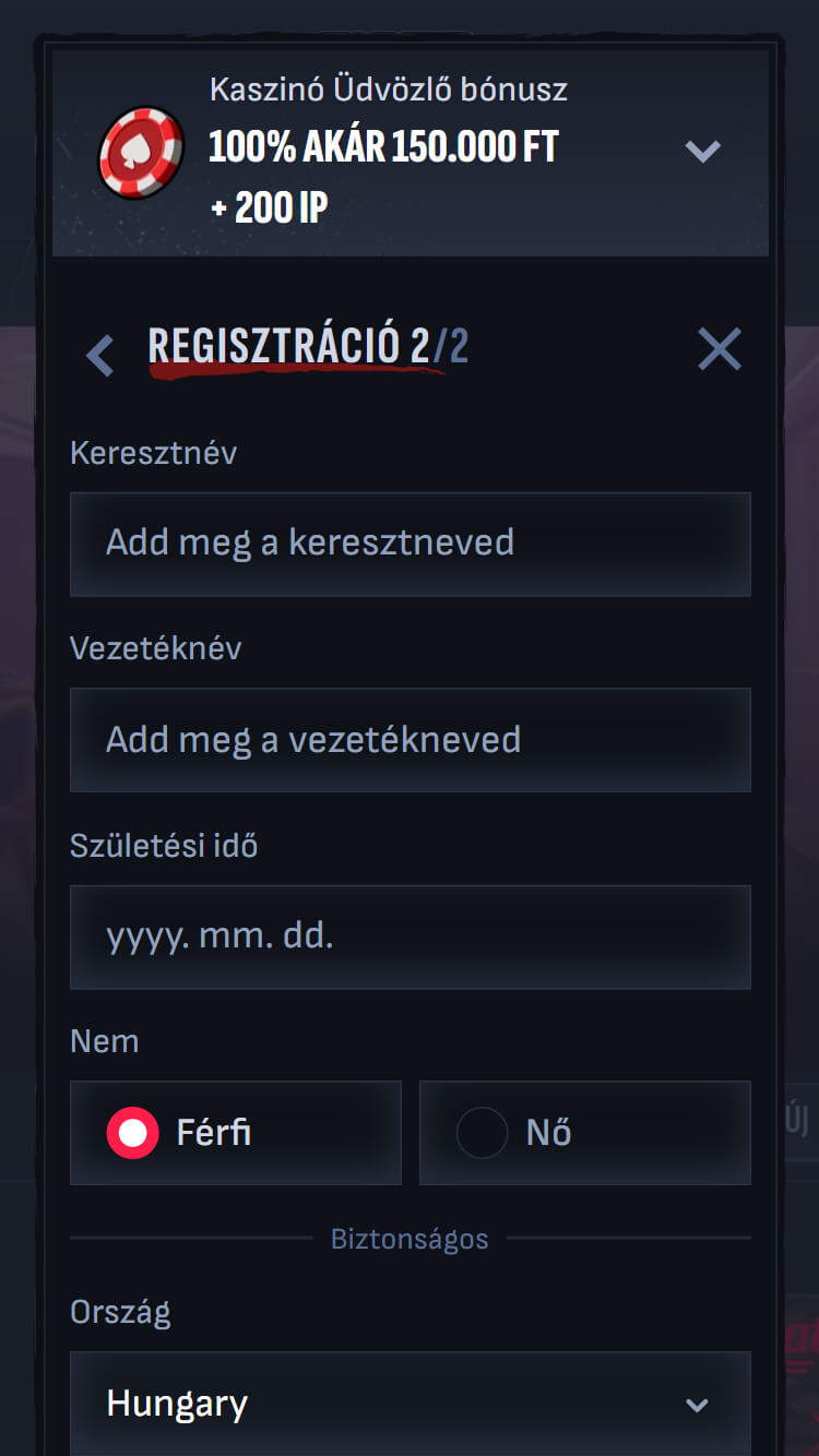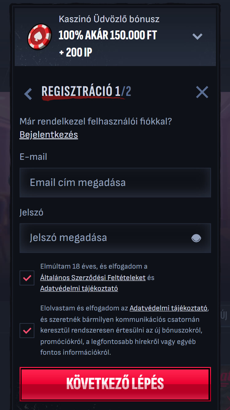 A valódi játék ott kezdődik, ahol valódi pénzt teszel kockára. Ehhez azonban regisztrációra van szükség. A saját fiókod létrehozása kifejezetten egyszerű feladat, főleg akkor, ha az alábbi útmutatót követed. Szánj rá 5 percet, és már jöhet is a játék!