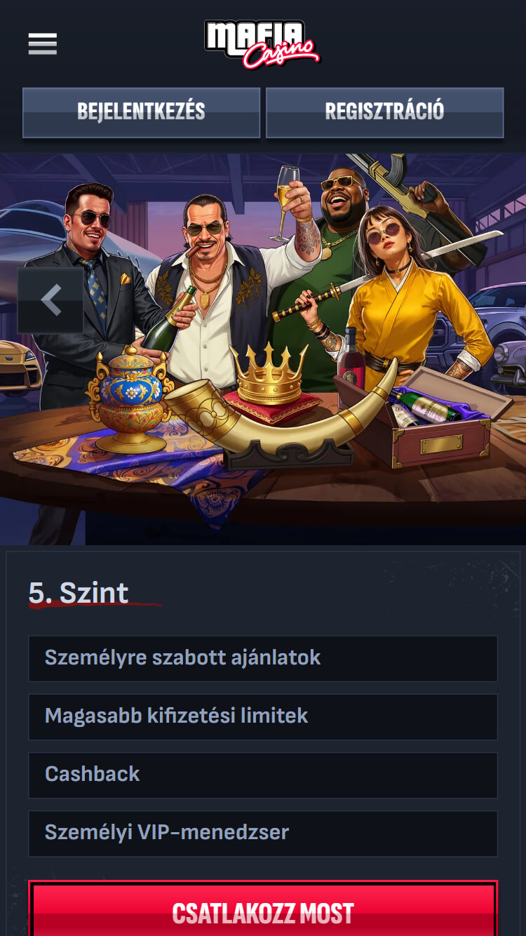 A Mafia Casino VIP programja nem csak státuszszimbólum, hanem egy fokozatosan nyíló lehetőségcsomag, amely a hűséges játékosokat személyre szabott ajánlatokkal, magasabb limitekkel és exkluzív figyelemmel jutalmazza. Az ötlépcsős rendszerben minden új szint új előnyöket hoz: a hétköznapi promócióktól egészen a dedikált VIP-menedzserig. Itt nemcsak játszol, hanem egyre beljebb kerülsz a digitális kaszinó világ belső köreibe. Összegyűjtöttük az 5 szint előnyeit:
