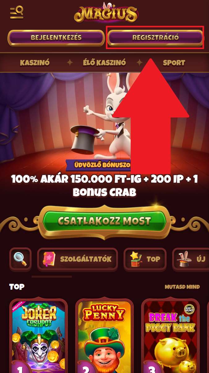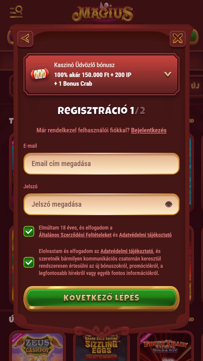 A Magius kaszinóban játszani csak regisztráció után lehet, de ez itt nem egy labirintus, inkább egy gyors belépő. Semmi bonyodalom, pár adat, és már úton is vagy a kezdőbónusz és a játék felé.