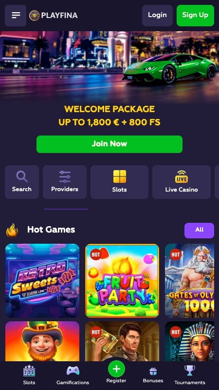 | 🚀 Kihívások (Challenges) | Jutalom Playfina Coins formájában | A kihívások különböző nyerőgépeken teljesíthetők, például Gates of Olympus, Bonanza Link, Elvis Frog in Vegas. Minimum tét: 1 € (383 Ft). Cél: meghatározott szorzó (x300–x1200) elérése. A jutalom azonnal jár Playfina Coins-ban, amelyek beválthatók bónuszokra vagy jutalmakra. |