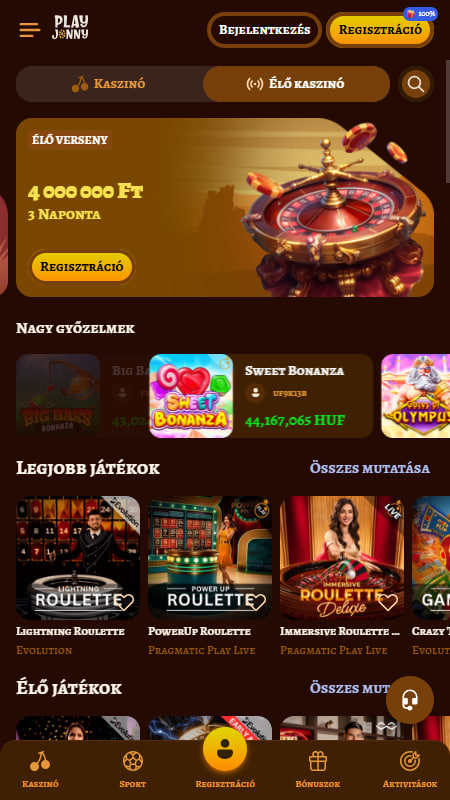 A Playjonny kaszinó élő részlege prémium minőségű játékokat kínál élő osztókkal. Az élő játékok között megtalálhatók a klasszikus asztali játékok, mint a blackjack, rulett és baccarat, valamint népszerű játékshow-k, például a Crazy Time és Monopoly Big Baller. Ezek a játékok valós időben zajlanak, élő közvetítéssel, profi osztókkal, ami autentikus kaszinóhangulatot teremt.