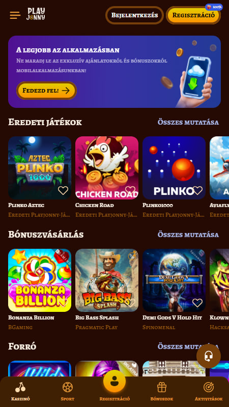 A Playjonny nem csupán mobilbarát weboldalt kínál, hanem letölthető natív alkalmazást is biztosít iOS és Android készülékekre. Ezek az appok teljes funkcionalitással bírnak: elérhetőek rajtuk a legnépszerűbb nyerőgépek, élő kaszinójátékok, sportfogadási lehetőségek, valamint minden bónusz és promóciós ajánlat. Emellett a mobilalkalmazások támogatják az élő ügyfélszolgálat elérését, a gyors befizetést és kifizetést, illetve a fiók teljes kezelését.