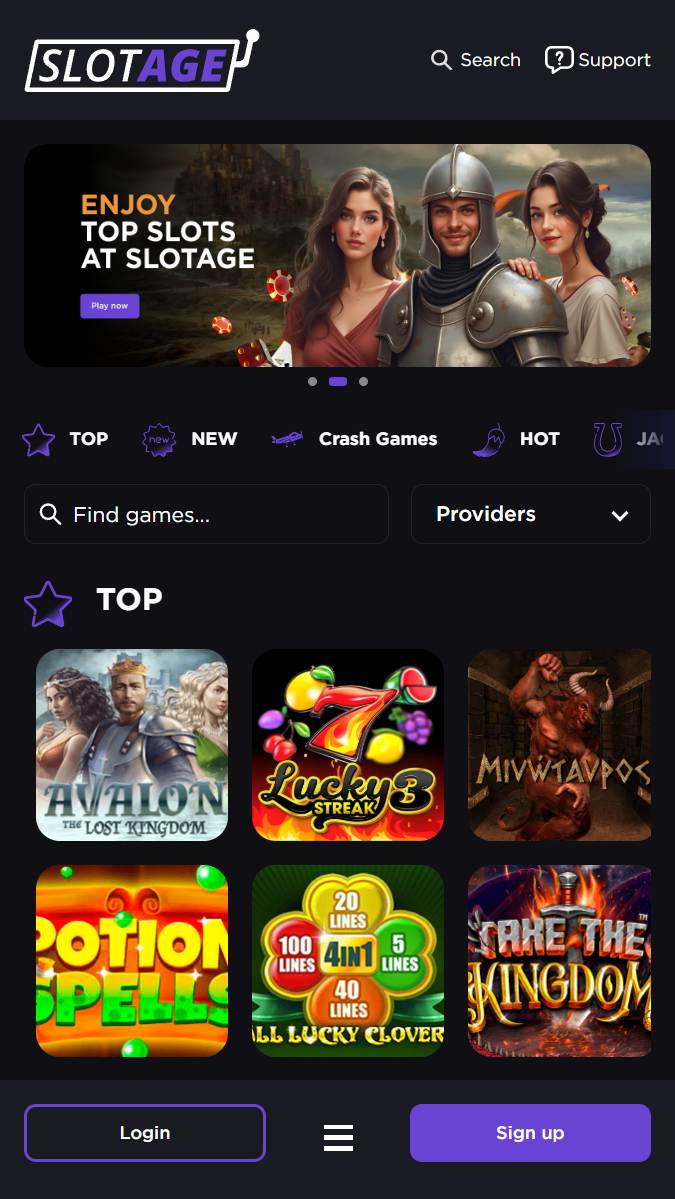 Bónuszokból nincs sok: három külön befizetési ajánlat várja az új játékosokat, mindegyikhez járnak ingyen pörgetések is, meghatározott feltételekkel. VIP program viszont nincs, ez tudatos döntésnek tűnik, a Slotage nem a hűségpontokra, hanem a játékélményre helyezi a hangsúlyt.
