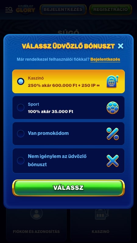A felhasználói élmény gördülékeny, a támogatás elérhető, gyors és magyar nyelven is működik. Kiemelendő a felelősségteljes játékhoz való hozzáállás, amely nem üres ígéret, hanem működő keretrendszer. A SpinsOfGlory tehát nem akar többnek látszani, de amit vállal, azt hozza.
