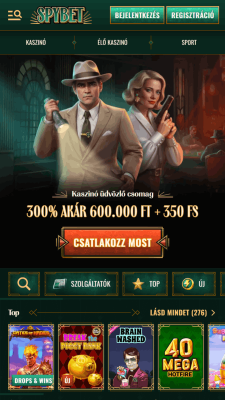 A SpyBet nem akar többnek látszani, mint ami – de amit vállal, azt látványosan teljesíti. Már az első pillanatban érzed, hogy itt valami mással van dolgod: a zöld-arany színkombináció, az elegáns háttér minta, a letisztult menük nem csak szépek, hanem irányítanak is.