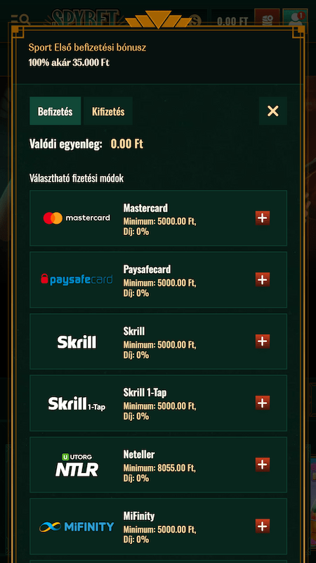 | Paysafecard | 5000 – 350000 | Nem elérhető | Nem elérhető | Ingyenes |