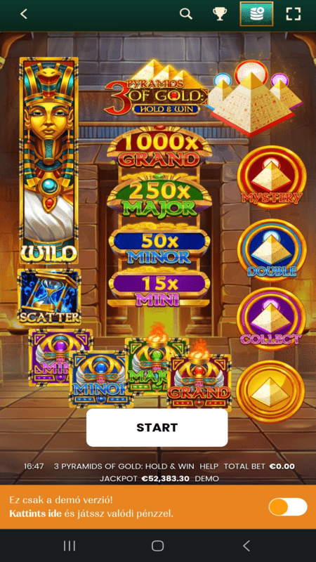 A játékkínálat? Ugyanaz, mint asztali gépen. A nyerőgépek forognak, az élő kaszinóban pattog a rulettgolyó, és a befizetés is megy, mintha egy teljes értékű alkalmazásban lennél. Mobilra szabták az egészet, de nem butították le – inkább úgy tűnik, mintha eleve telefonra született volna.