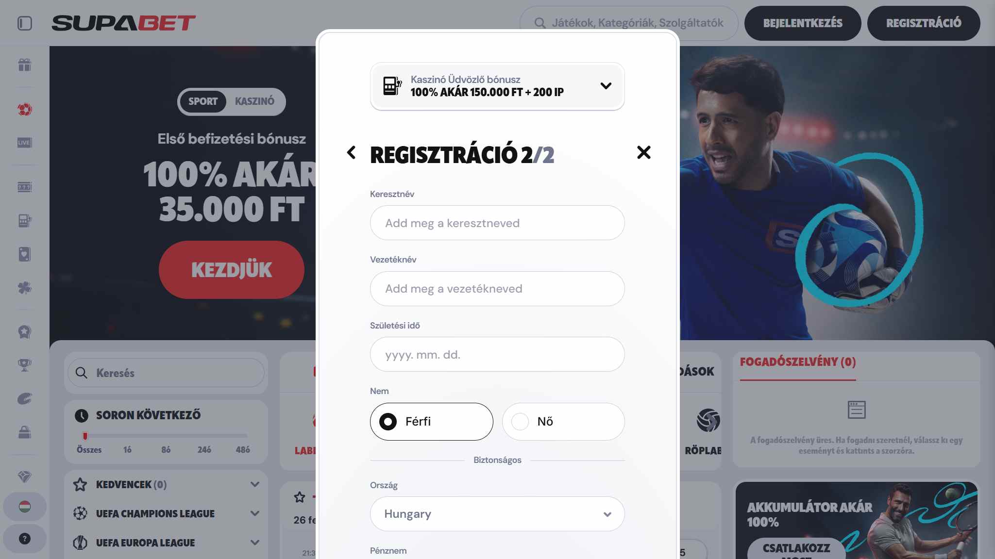 A Supabet bónuszai nélkül játszani? Olyan, mint pizzát enni sajt nélkül – lehet, de miért tennéd?! Az üdvözlő bónusz 100%-os feltöltést ad akár 150.000 Ft-ig, plusz 200 ingyen pörgetést. A trükk? 40-szer meg kell forgatnod, és Neteller vagy Skrill nem játszik! A heti reload bónusz 50 pörgetéssel jutalmaz, de csak ha hétfő és csütörtök között legalább 6000 Ft-ot befizetsz.